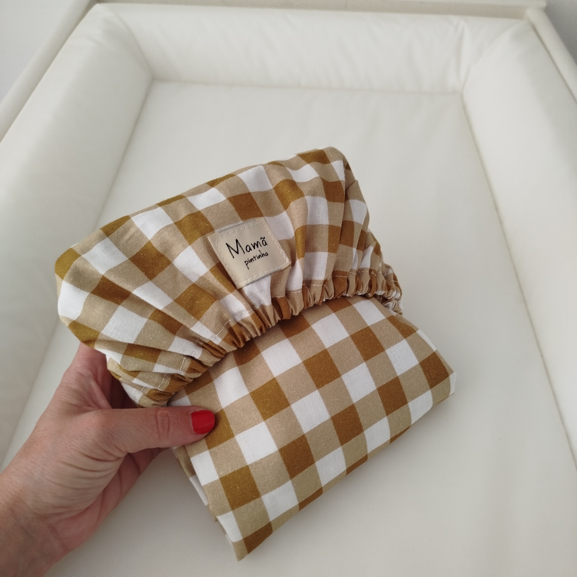 Forra para Trocador de fralda | muda fraldas | forra para muda fraldas | vichy mostarda| quadrados