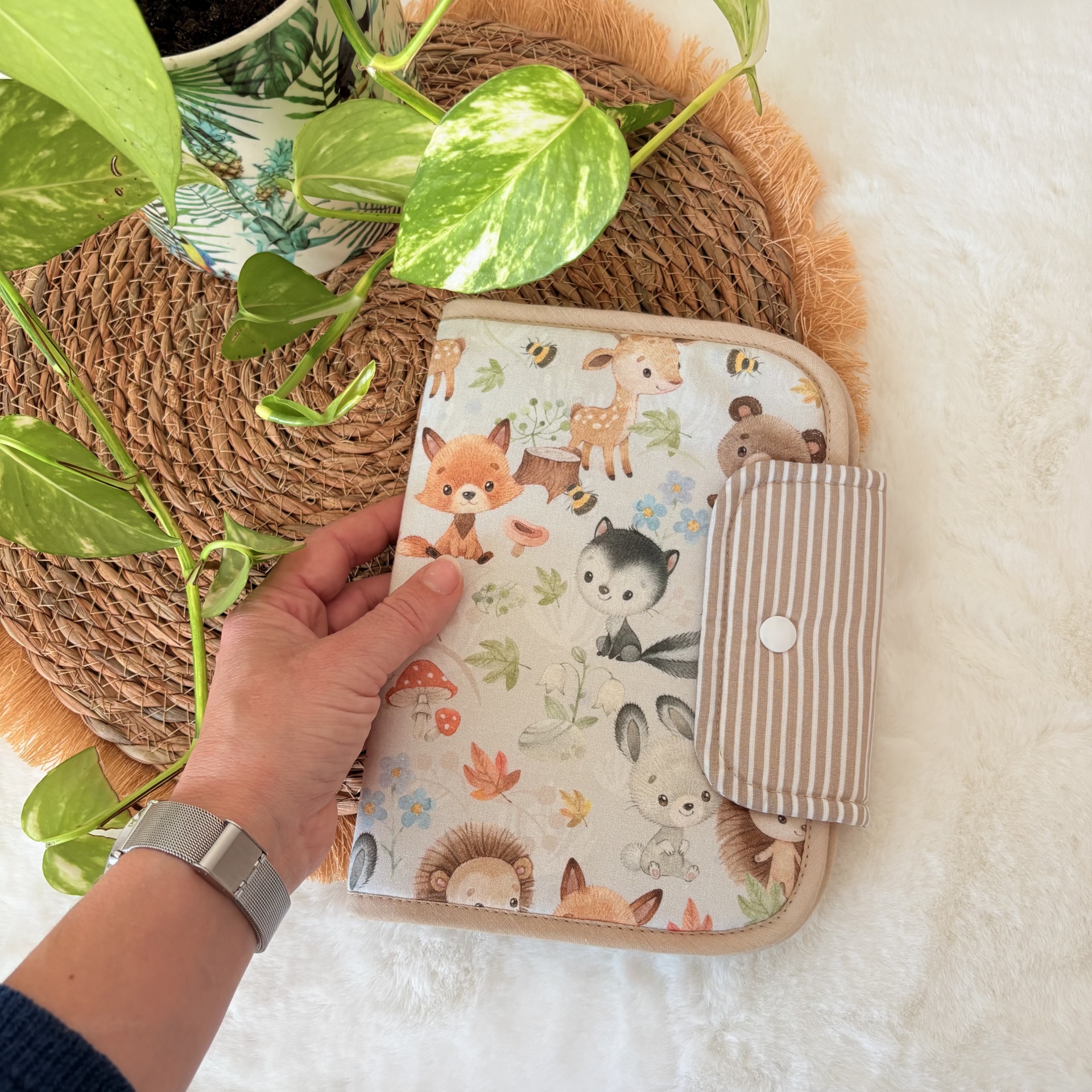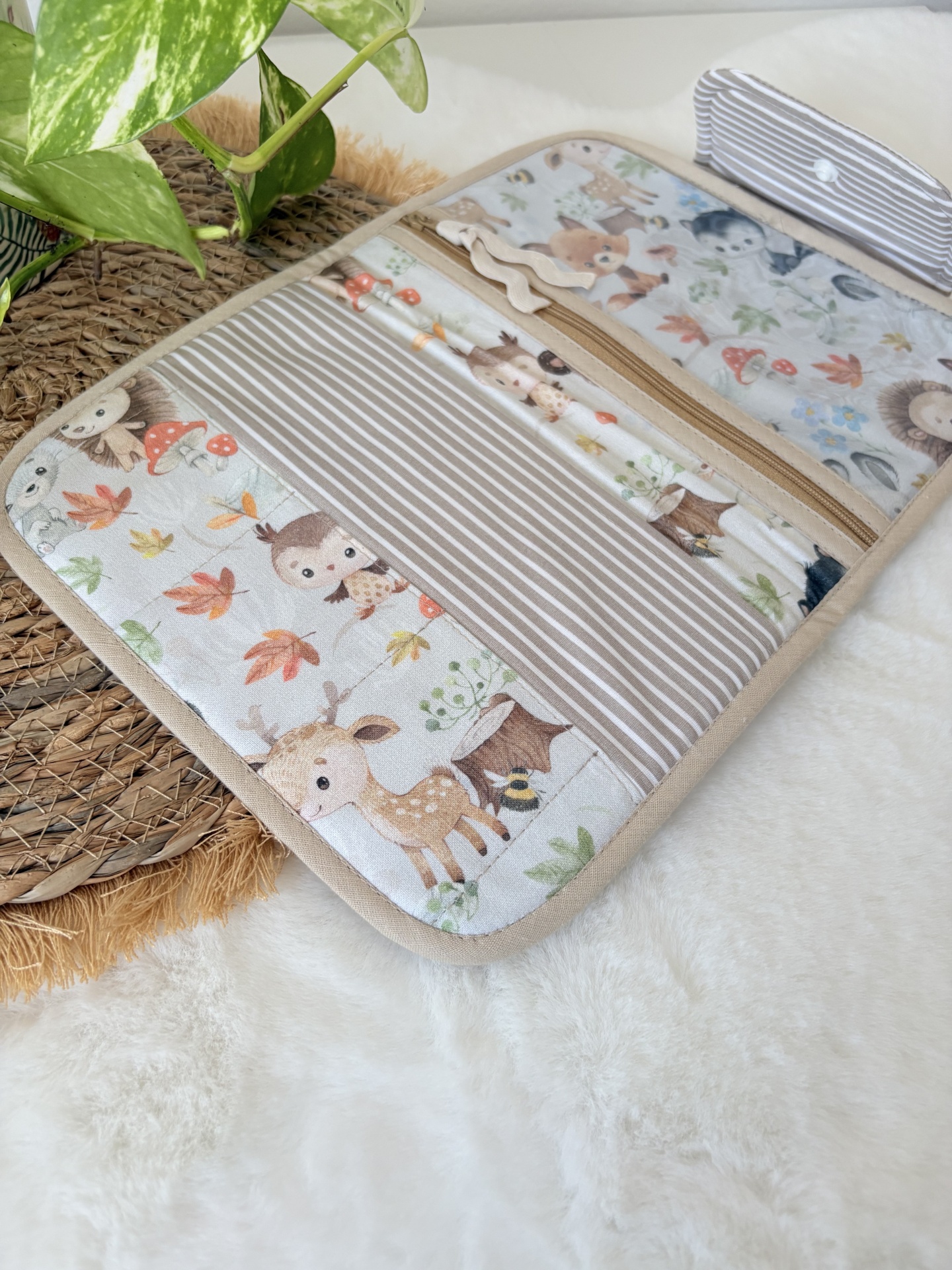 *Isto tudo numa só bolsa: divisória em tecido para colocar os boletins de saúde, vacinas e papéis importantes;