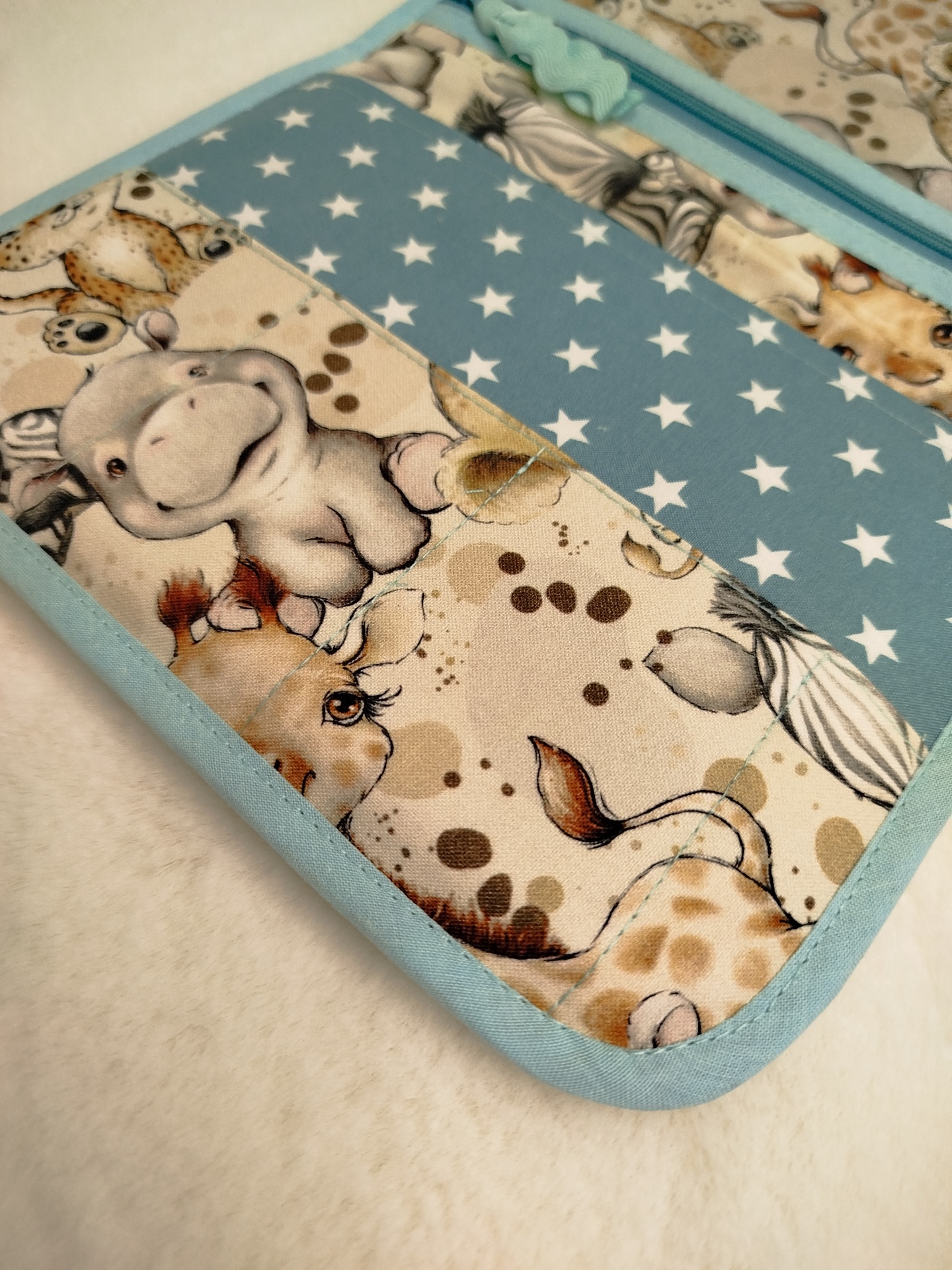 Porta documentos | bolsa boletins | Porta boletins | baby safari com verde menta estrelas