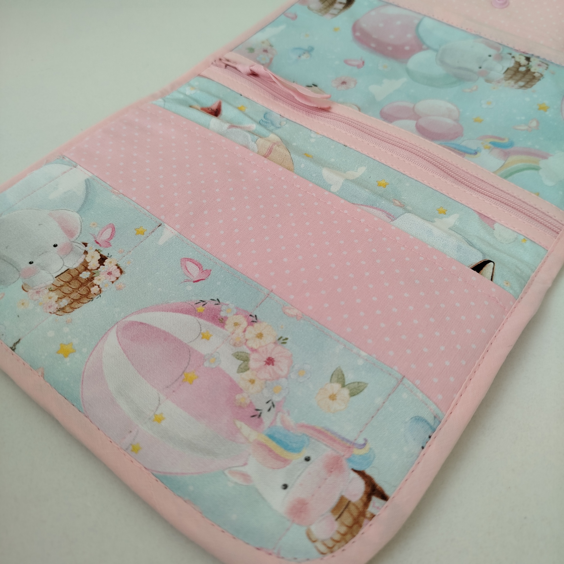 *Isto tudo numa só bolsa: divisória em tecido para colocar os boletins de saúde, vacinas e papéis importantes;