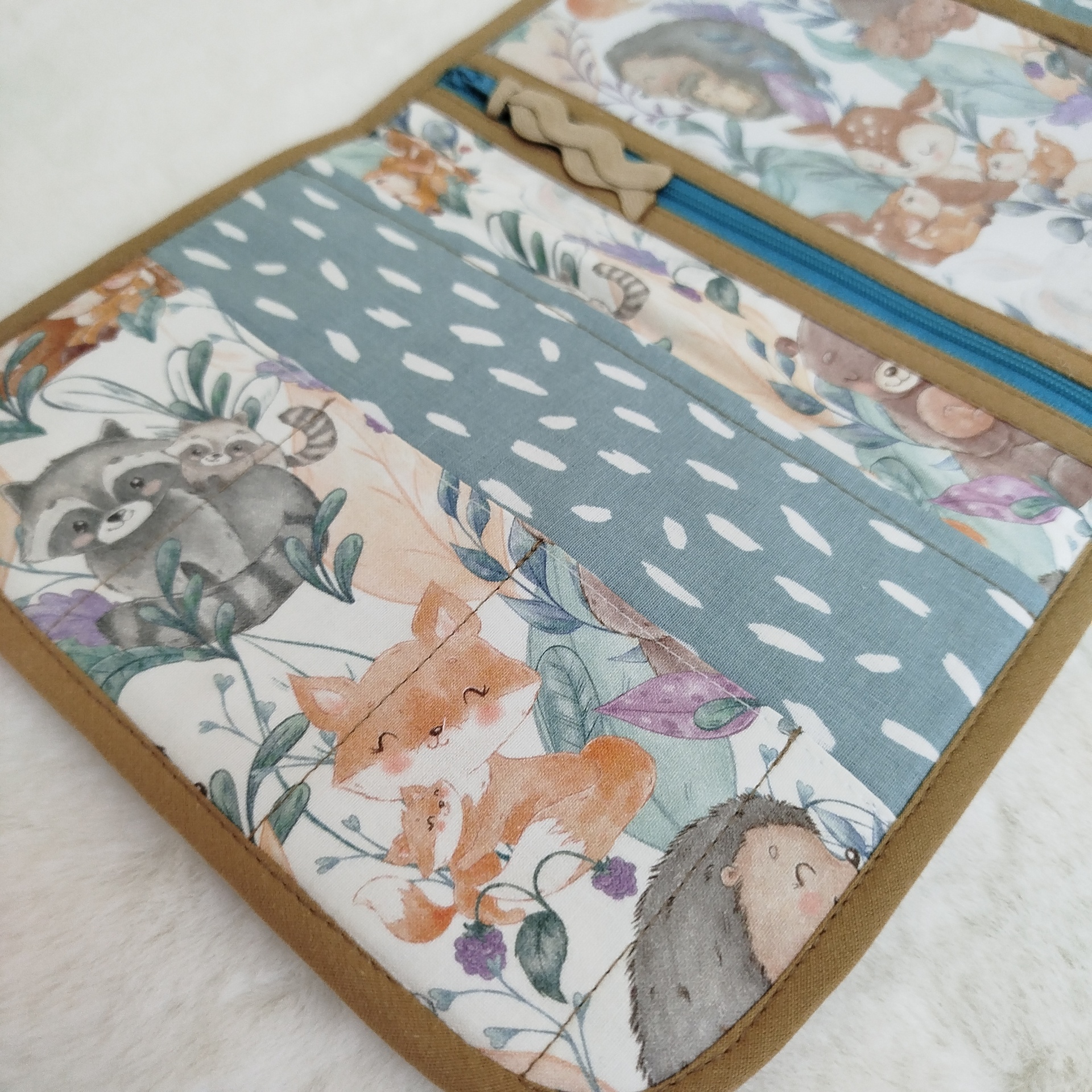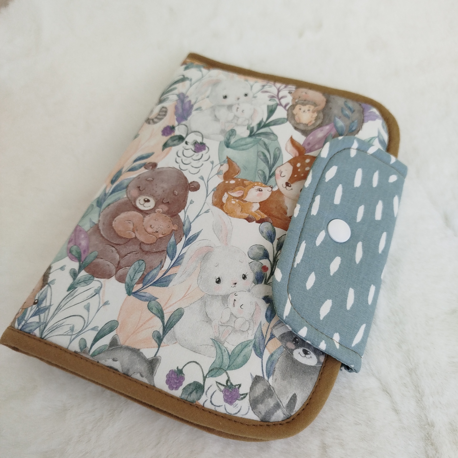 *Isto tudo numa só bolsa: divisória em tecido para colocar os boletins de saúde, vacinas e papéis importantes;