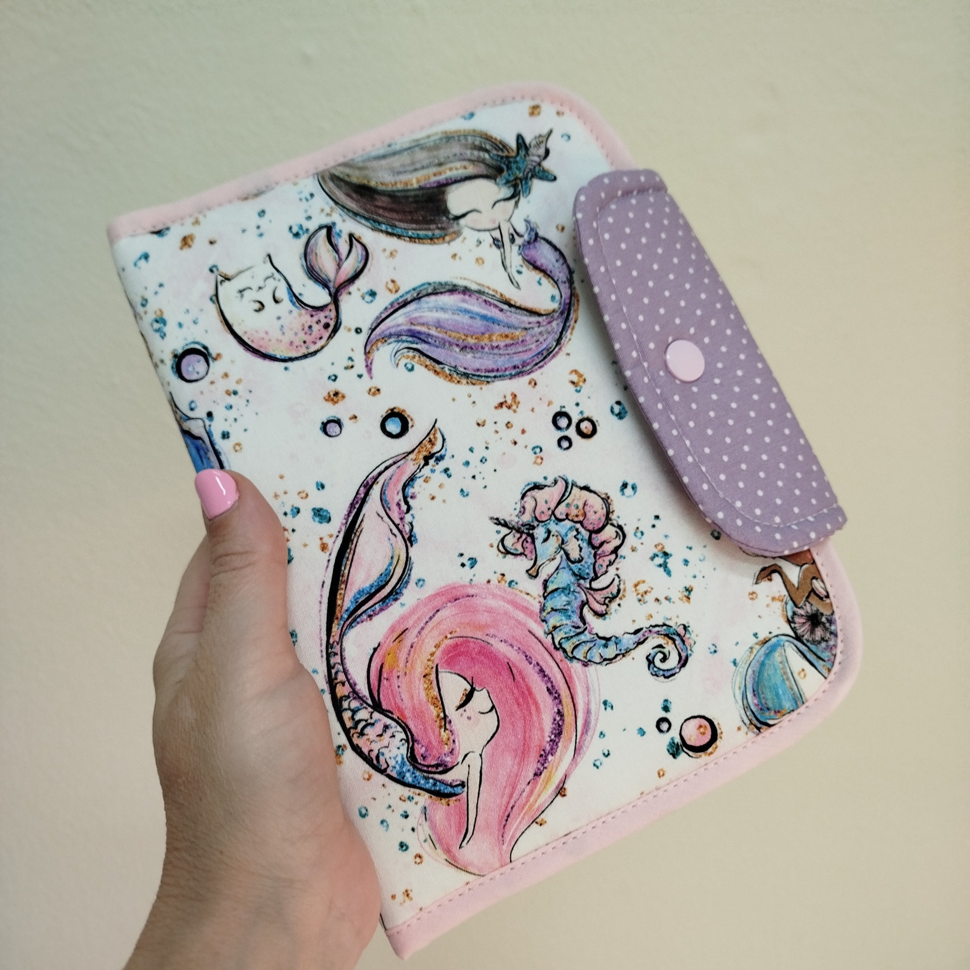 Porta documentos | bolsa boletins | Porta boletins | Sereias com lilás