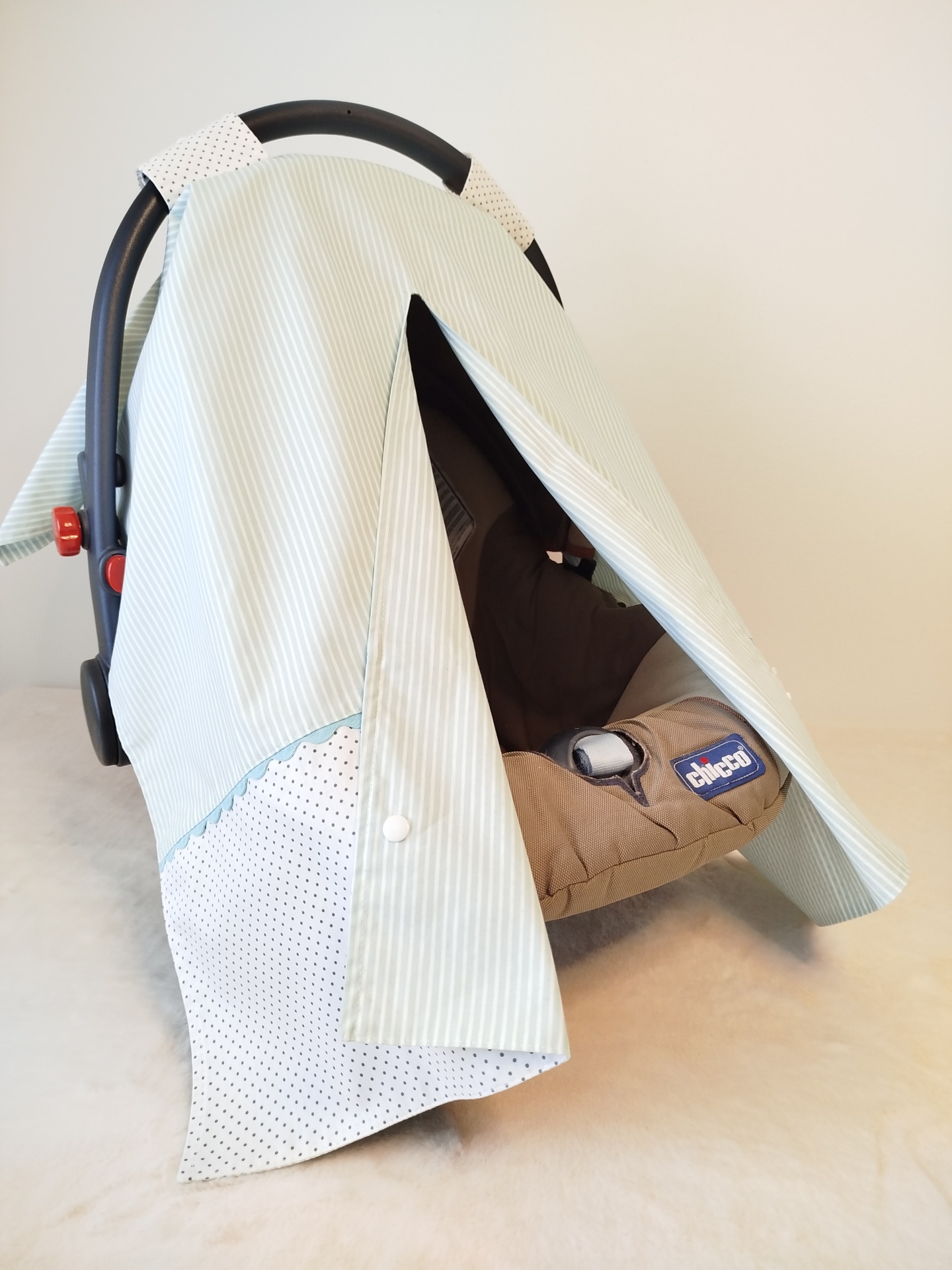 Tapa ovo | Tapa vento | proteção sol | babycoque | clássico riscas verde água